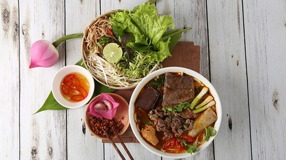 If you’re craving an authentic bowl of Bún bò Huế—rich in flavor but not overly spicy—O Xuân is the perfect choice. The broth is fragrant with lemongrass, paired with thick rice noodles, tender beef brisket, crab cake, and pork leg. For those who enjoy a bolder kick, pure fermented shrimp paste is available, served alongside a generous helping of fresh, vibrant herbs.