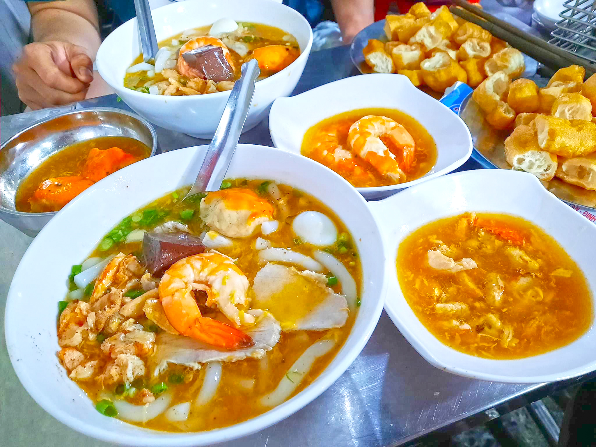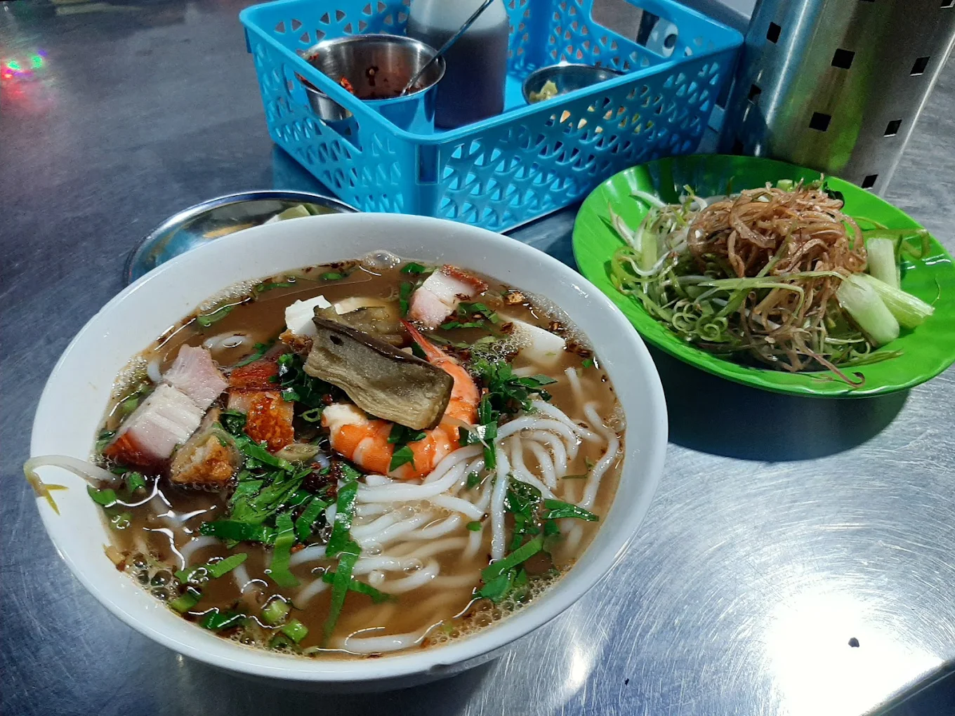 Fragrant fermented fish broth, hearty toppings of shrimp, squid, fish, pork sausage. Long-standing hidden gem.