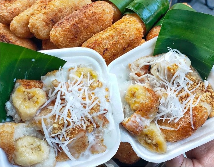Meanwhile, fried banana (chuối chiên) charms diners with its crispy golden crust and naturally sweet, soft banana inside. Commonly sold by street vendors, this snack is easy to find and evokes a warm, nostalgic feeling—especially perfect on rainy days or cool afternoons.